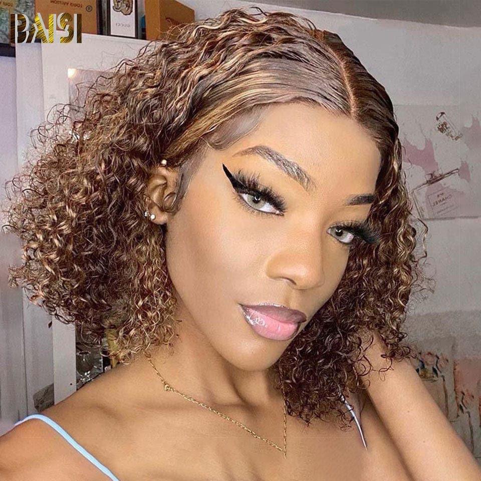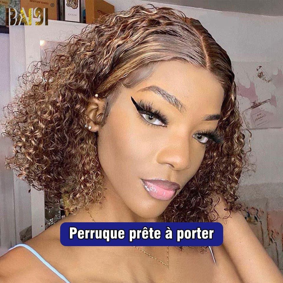 BAISI 13X4 Perruque Bob Curly En Mixte #4#27 Pré-plucked Pas Besoin de Colle en 100% Raw Hair Lace déjà couper