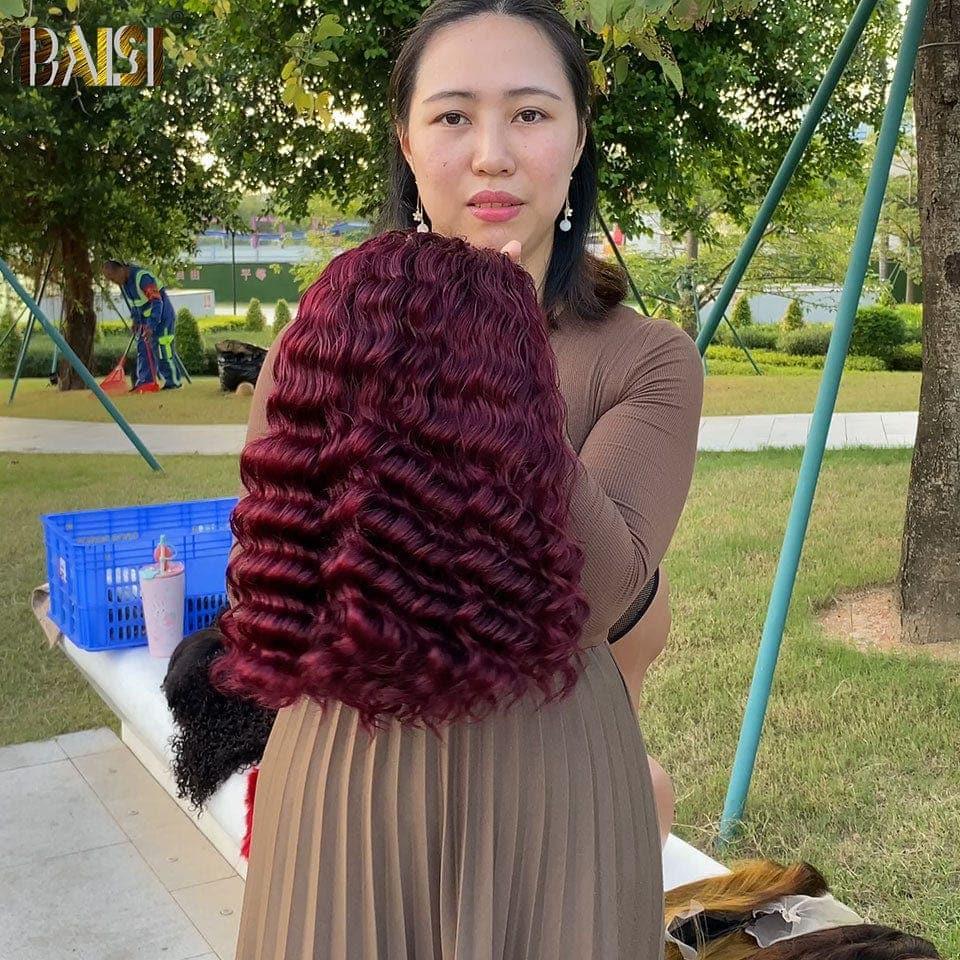 BAISI 13X4 Perruque Bob Deep Wave En Bordeaux 99J Pré-plucked Pas Besoin de Colle en 100% Raw Hair Lace déjà couper