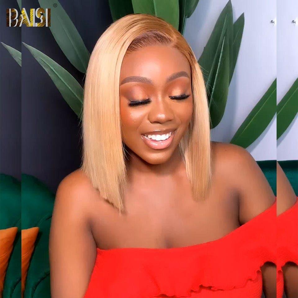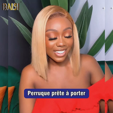 BAISI 13X4 Perruque Bob Lisse En Blonde #4#613 Pré-plucked Pas Besoin de Colle en 100% Raw Hair Lace déjà couper