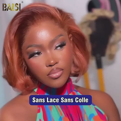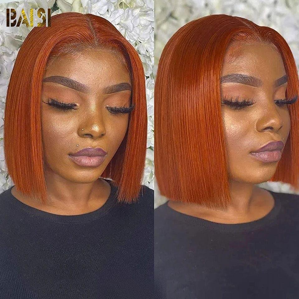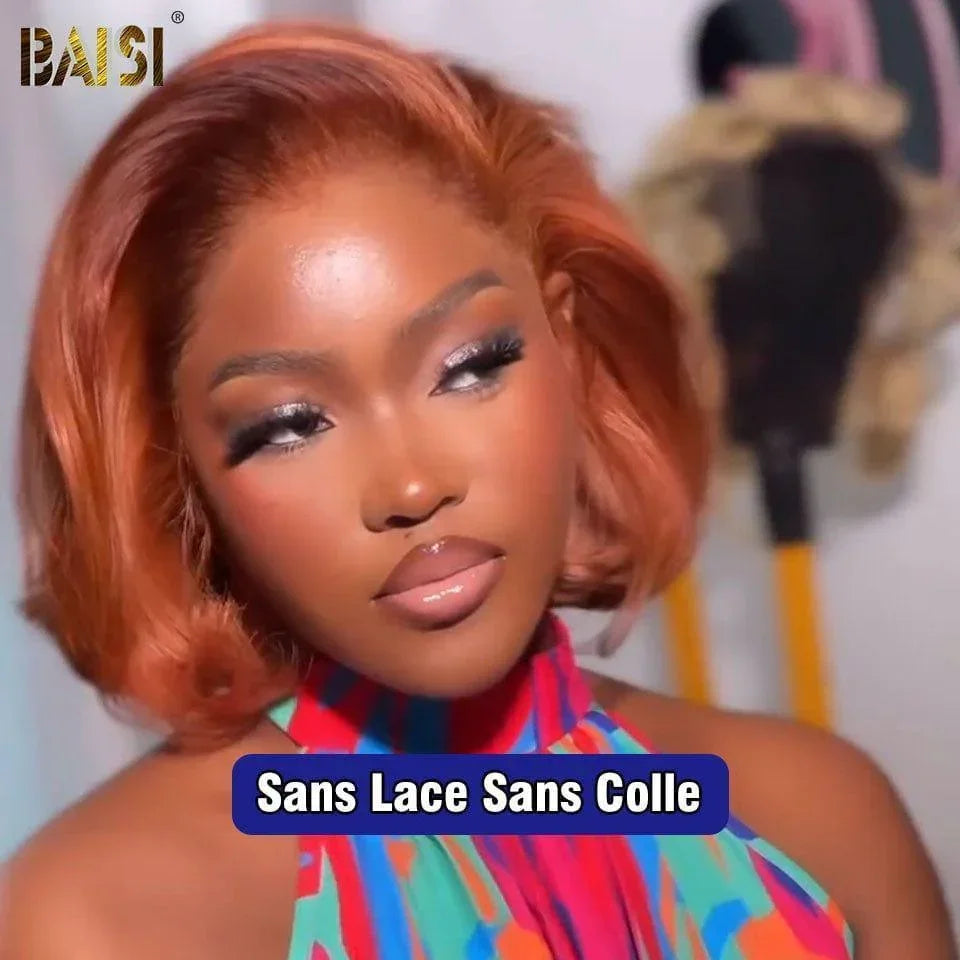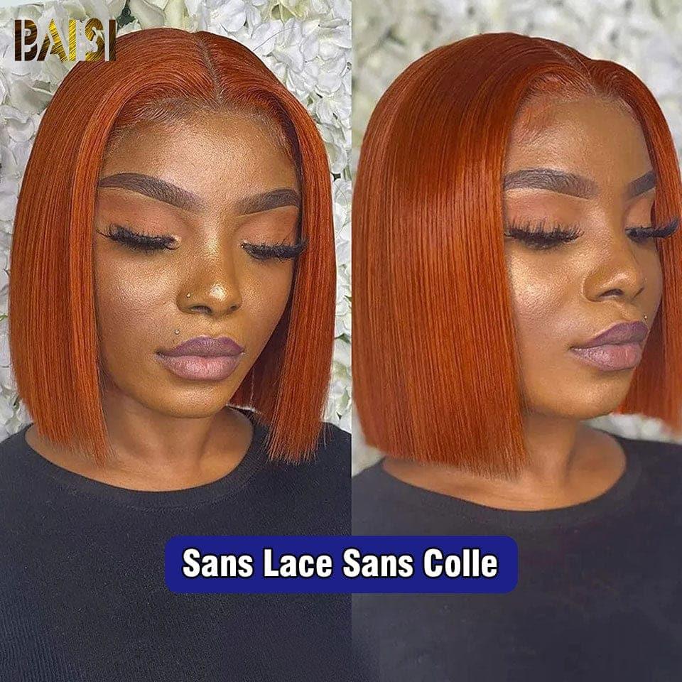 BAISI 13X4 Perruque Bob Lisse En Orange Pré-plucked Pas Besoin de Colle en 100% Raw Hair Lace déjà couper