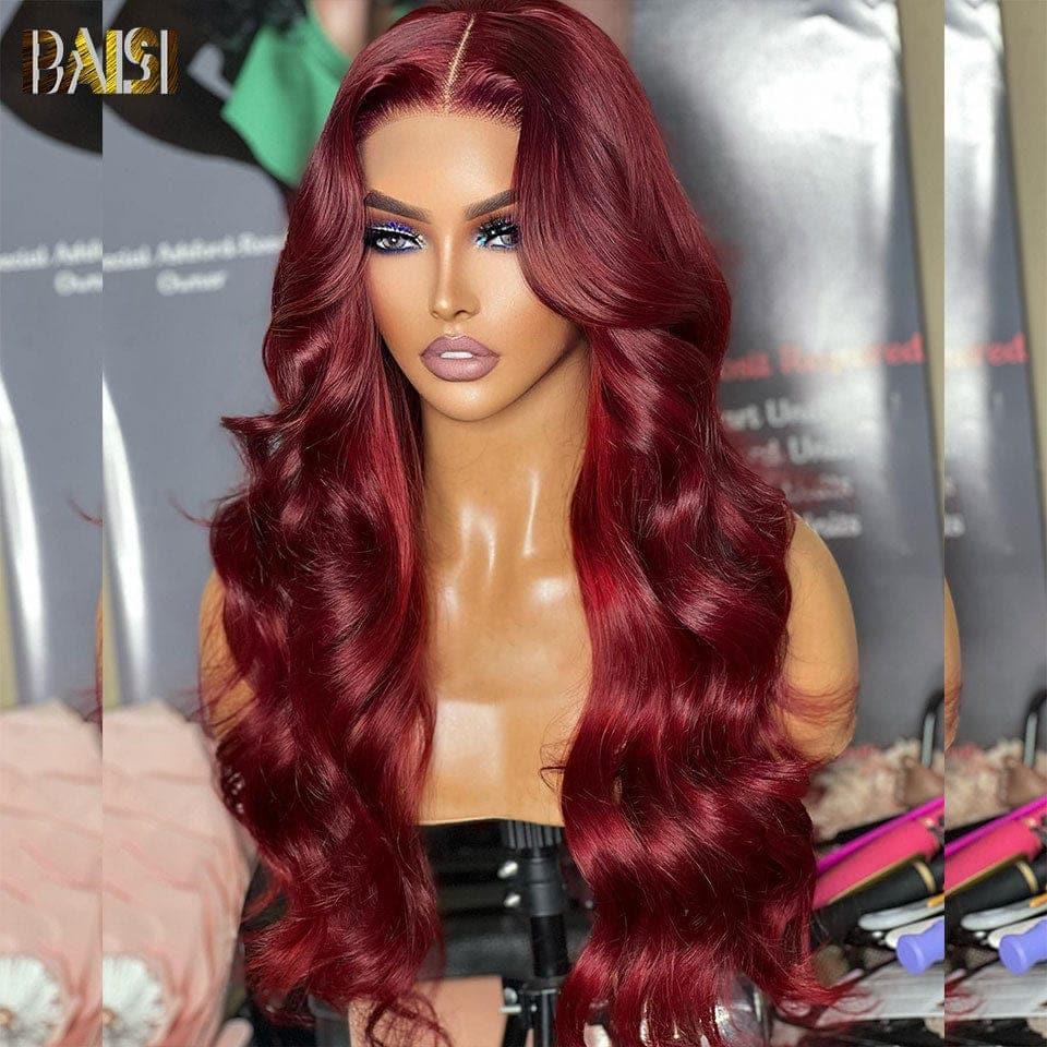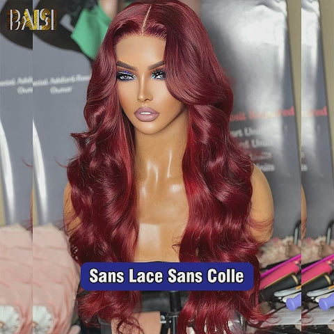 BAISI 13x4 Perruque Body Wave En couleur Bordeaux #99J Sans Colle Lace déjà couper Facile à Porter en 100% Cheveux Humains