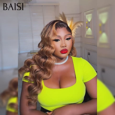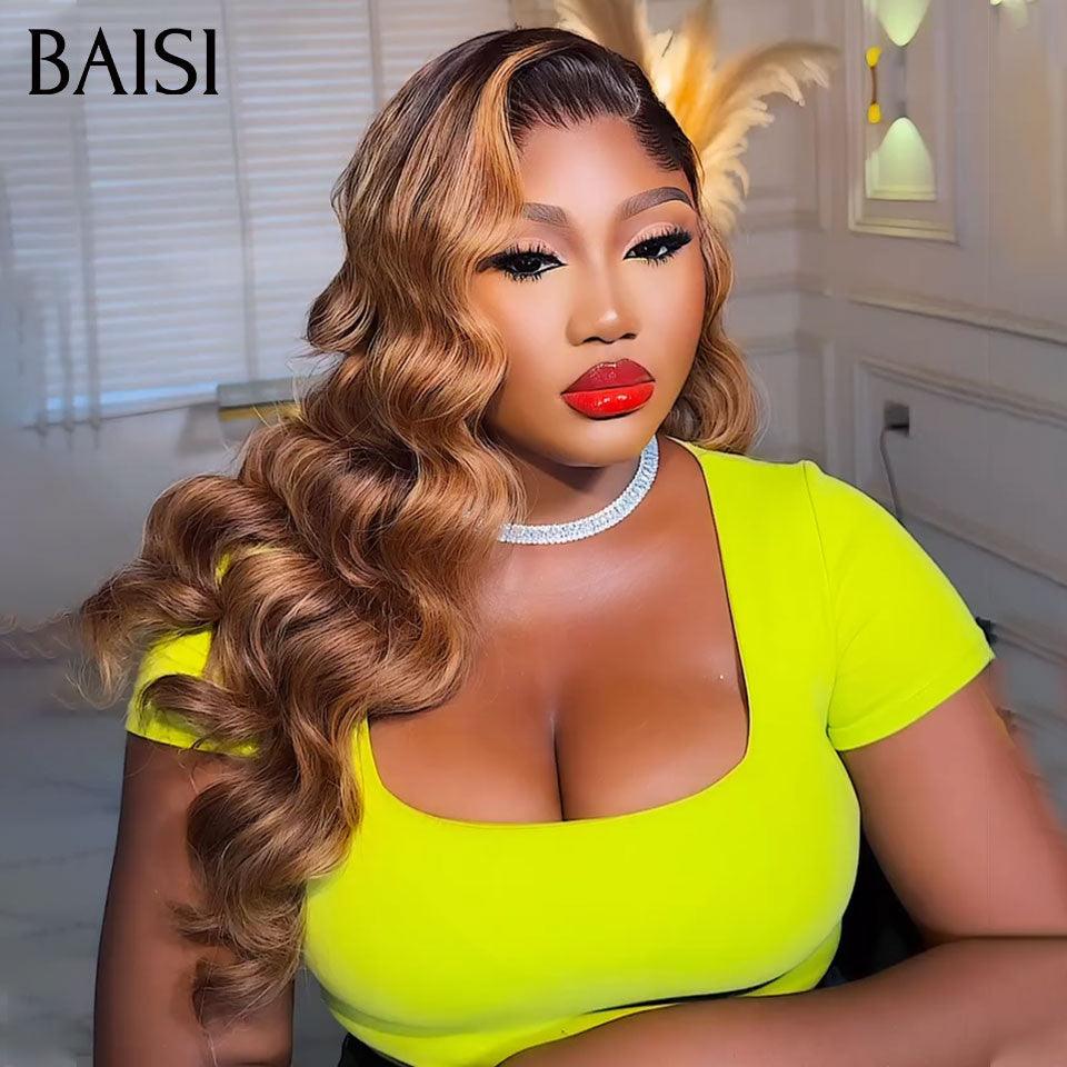 BAISI 13x4 Perruque Body Wave Sans Colle Couleurs personnalisées miel Pré-plucked Pas Besoin de Colle en 100% Raw Hair Lace déjà couper