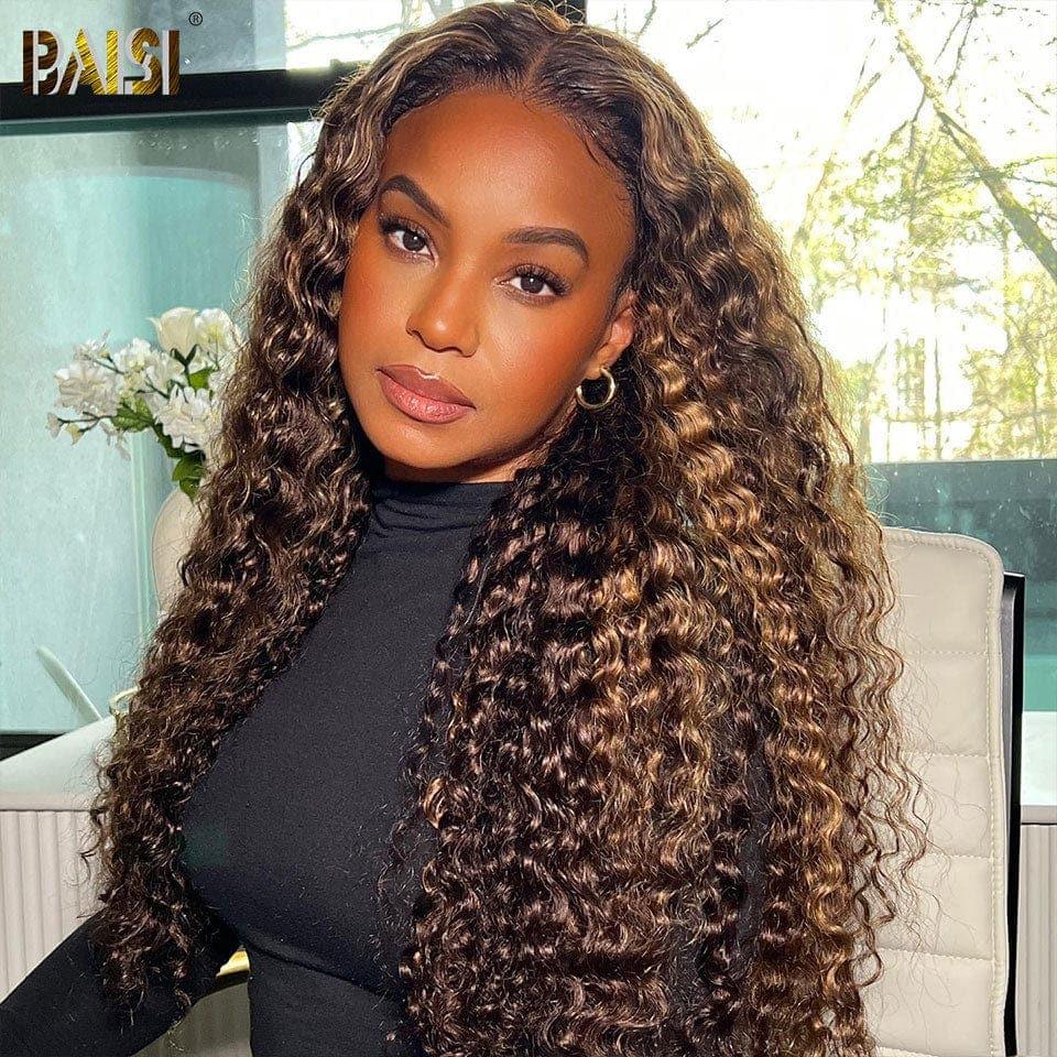 BAISI 13x4 Perruque Deep Wave En couleur Mixte #4#27 Sans Colle Lace déjà couper Facile à Porter en 100% Cheveux Humains