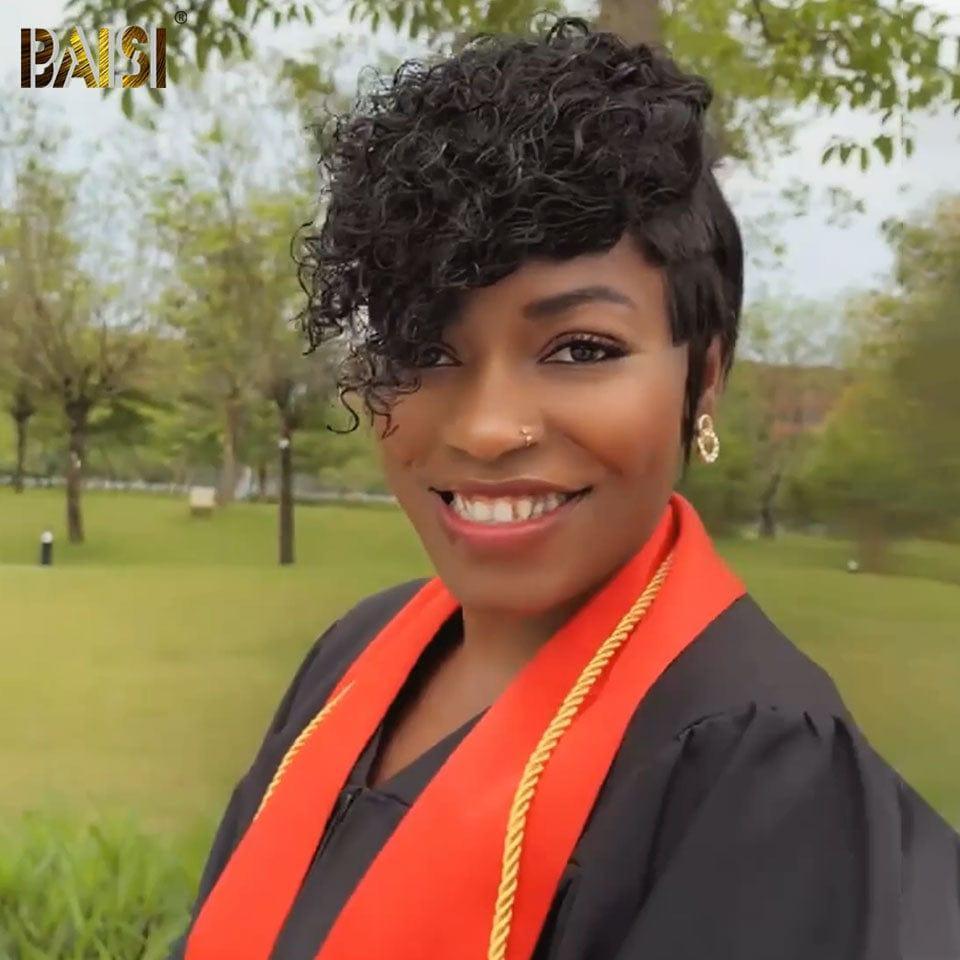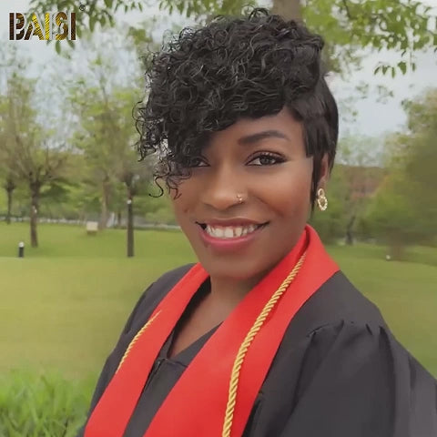 48H Livraison TVA 0€ BAISI sans Colle Fabriqué à la Machine curly wave 54€ ou 13X4 Perruque pixie Vague curly En Couleur Noir 85€ en 100% Cheveux Humains