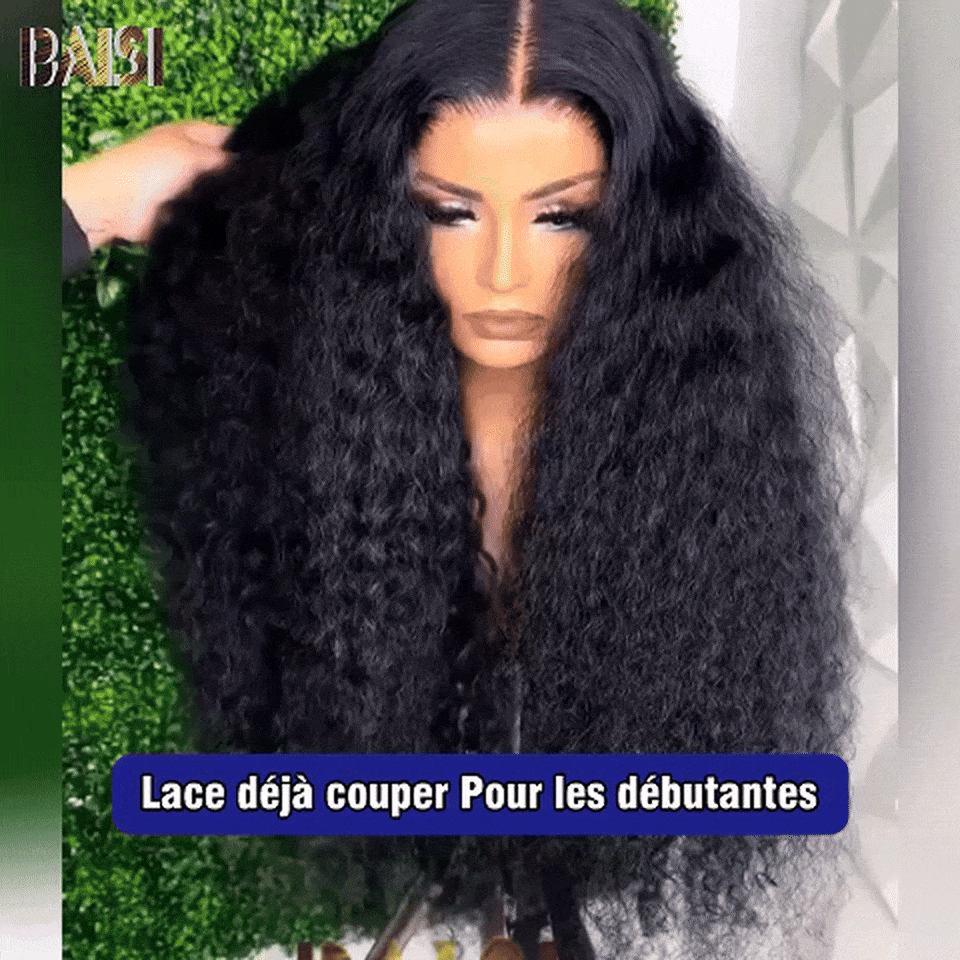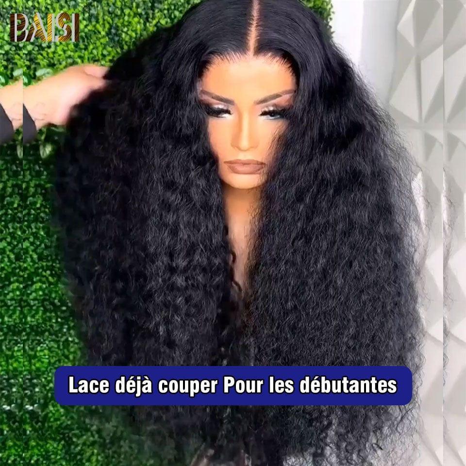 48H Livraison TVA 0€ BAISI 13x6 Frontal Perruque Curly 28 Pouce Pré-plucked Pas Besoin de Colle en 100% Raw Hair Lace déjà couper B