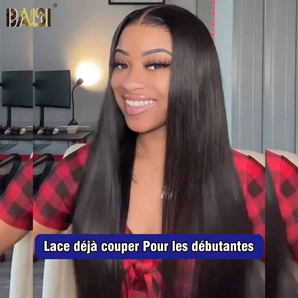 48H Livraison TVA 0€ BAISI Perruque Lace Frontal Lisse 26 Pouce 169€ 100% comme la vidéo Pré-plucked Pas Besoin de Colle en 100% Raw Hair Lace déjà couper B CODE: FR20