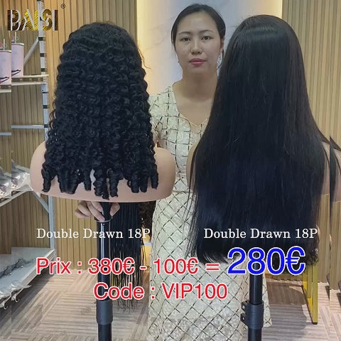 48H Livraison TVA 0€ BAISI 4X4 lace closure Lisse 129€ 22 Pouces ou 2 Perruques Double Drawn 280€ Réduction avec code promo en 100% vrais cheveux humains Code: VIP100