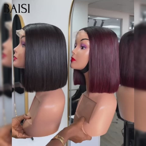 BAISI 2 Perruques bob Lisse pour revendre 159€ 4X4 lace 10 pouces en Couleur noir ou 12 pouces Bordeaux 200% densité en 100% vrais cheveux humains