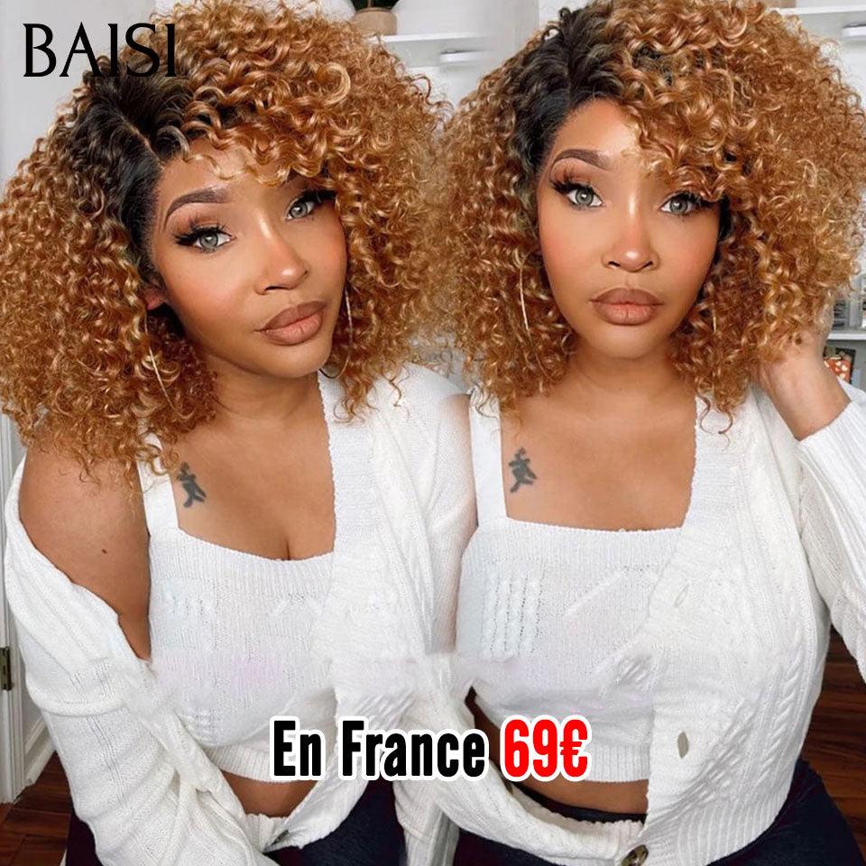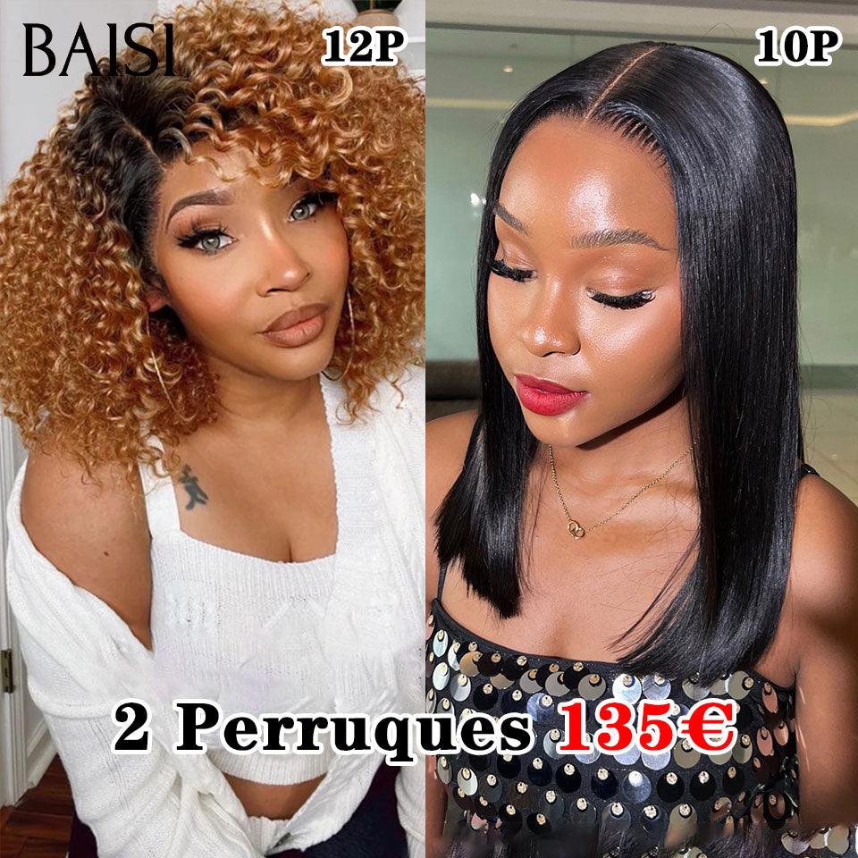 48H Livraison TVA 0€ BAISI 2 Perruques pour revendre T-part lace afro curl 1BT30# 12 Pouces ou 4X4 lace Lisse NOIR 10 Pouces 200% densité en 100% vrais cheveux humains FR20