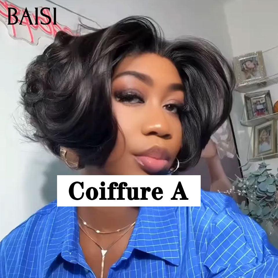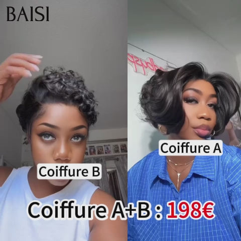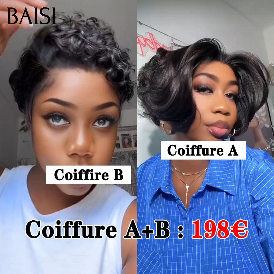 BAISI 2 Perruques pour revendre 198€ 13X4 bob Lisse 8 pouces et 13X4 pixie 6 Pouces en 100% vrais cheveux humains FR38