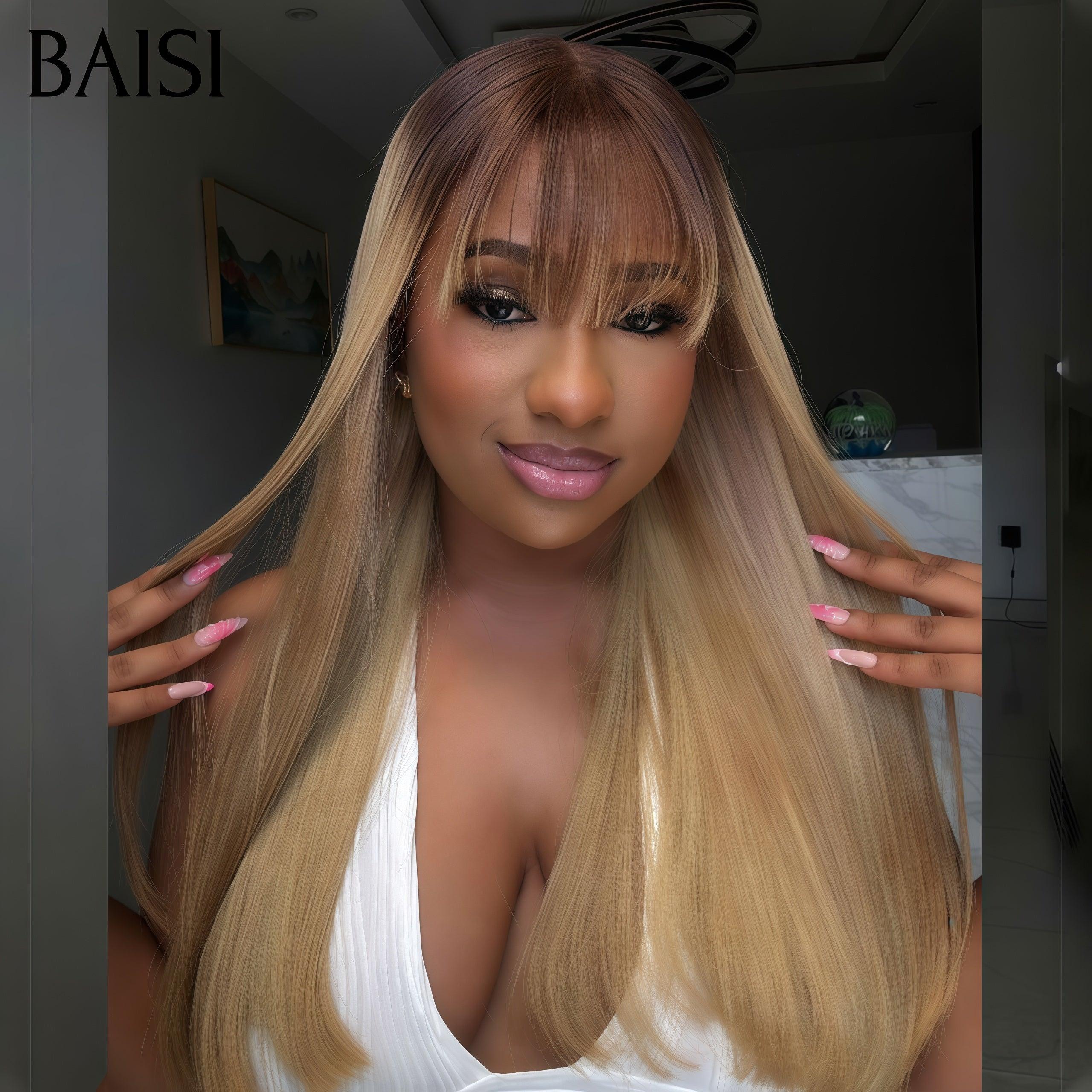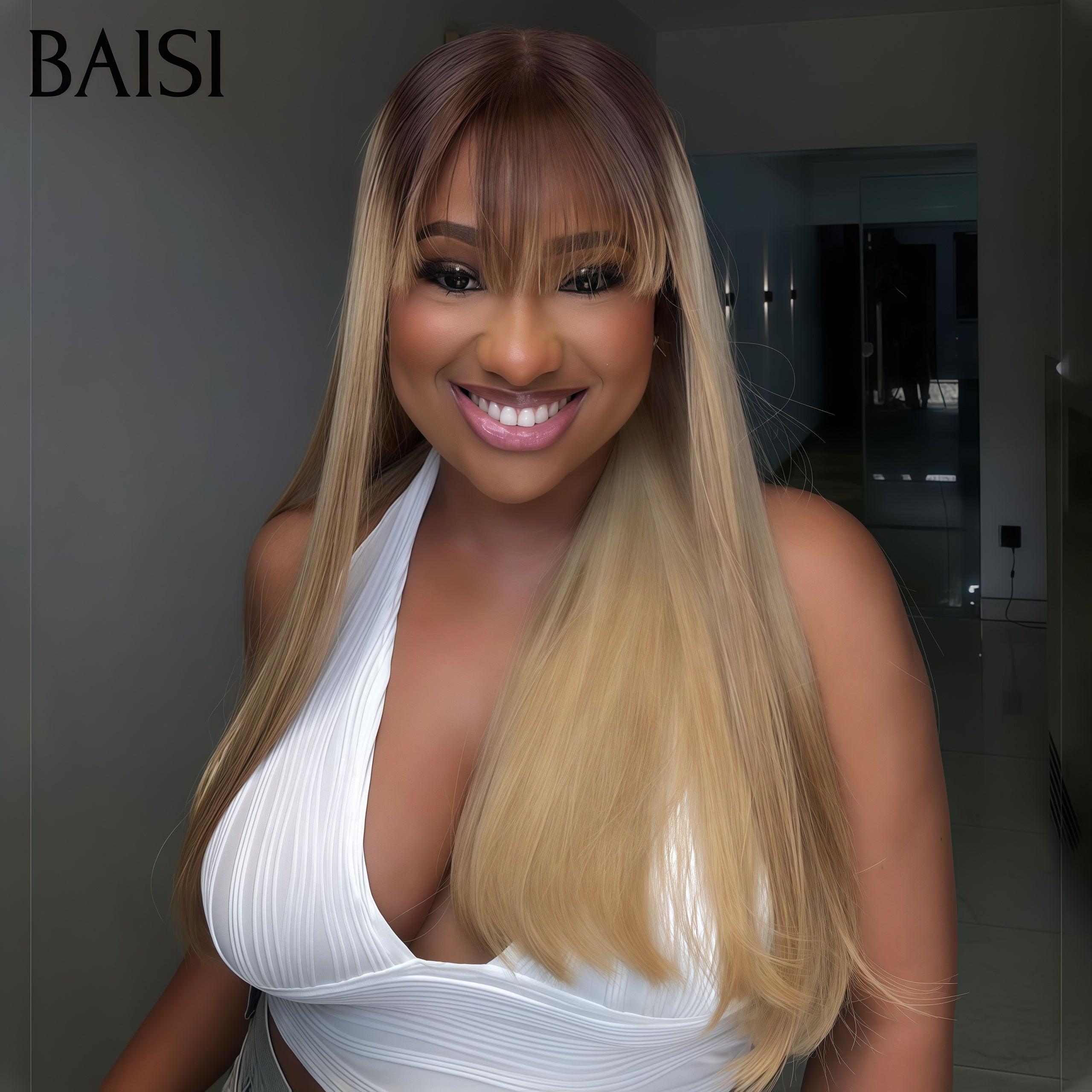 BAISI 250% densité Perruques de Luxe SDD BONE Straight 100% Viêtnam Hair avec frange en couleur blonde 4/613# Lisse plus de 20 ans d' utilisations MP50