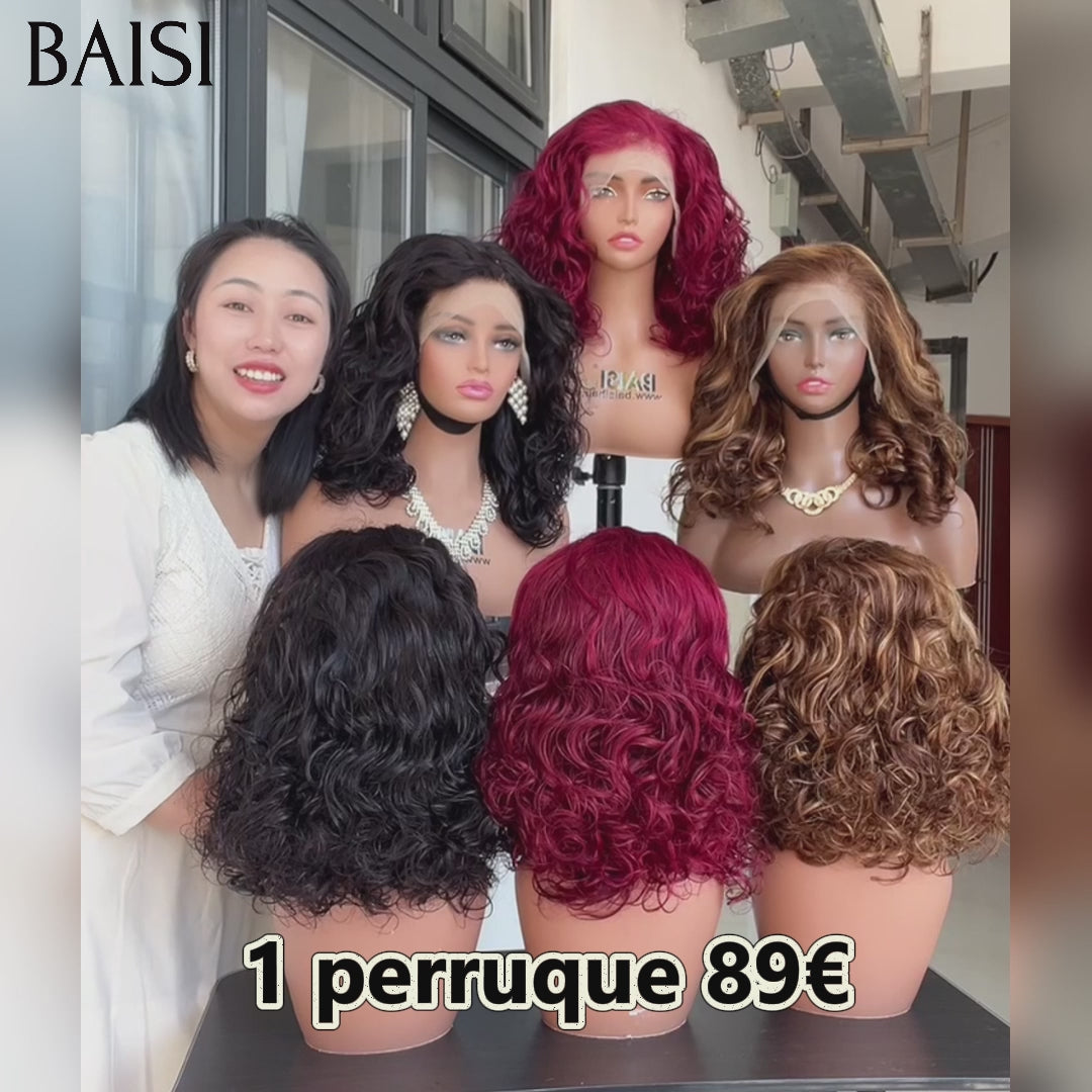 BAISI 3 Perruques 249€ 13X4 lisse 99J et Mixte 4#27# et NOIR 065C 250% densité en 100% Cheveux Humains FR38