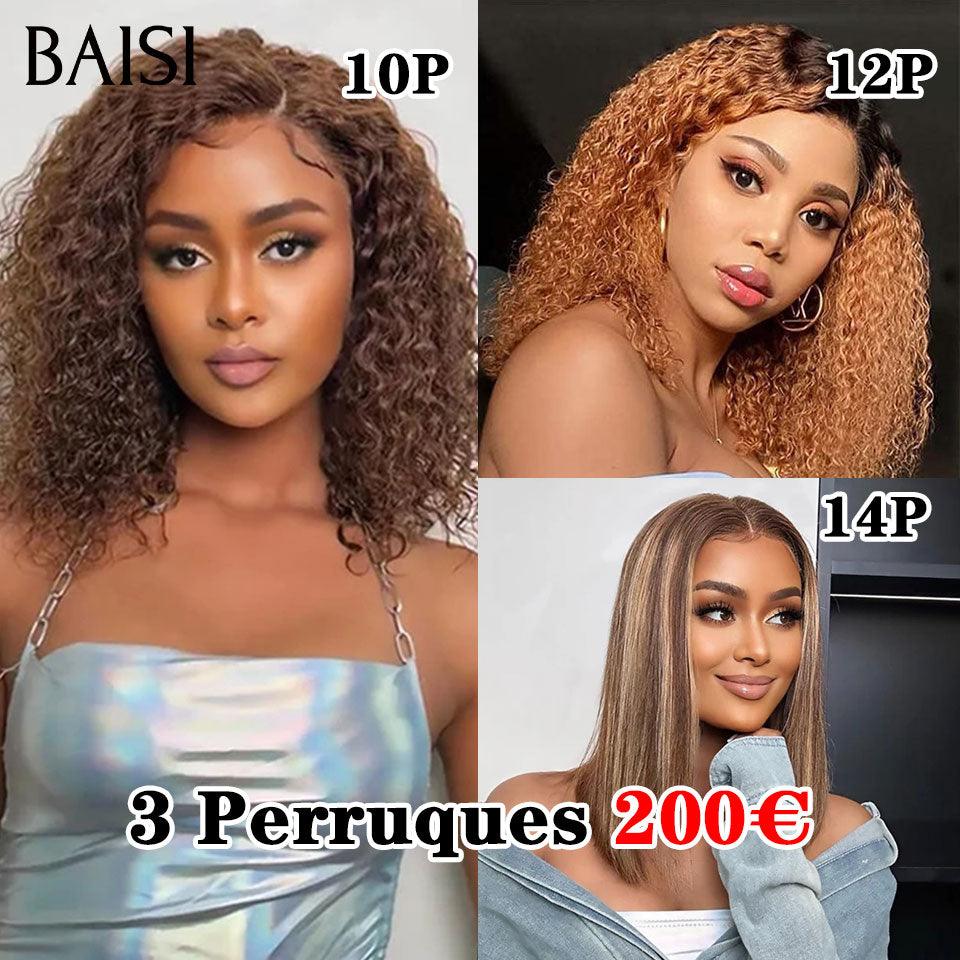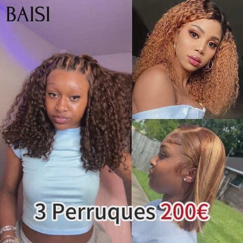 48H Livraison TVA 0€ BAISI 3 Perruques pour revendre 249€ 13X4 lace deep wave Marron et T-part lace afro curly miel et 13X4 lace lisse 4#27# en 100% vrais cheveux humains VIP100