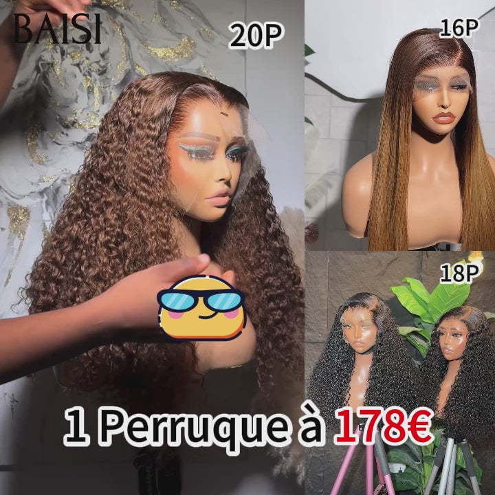 BAISI 3 Perruques pour revendre 559€ 13X4 curly et Lisse en 3 couleur NOIR et Marron et miel 4T27# en 100% vrais cheveux humains VIP100