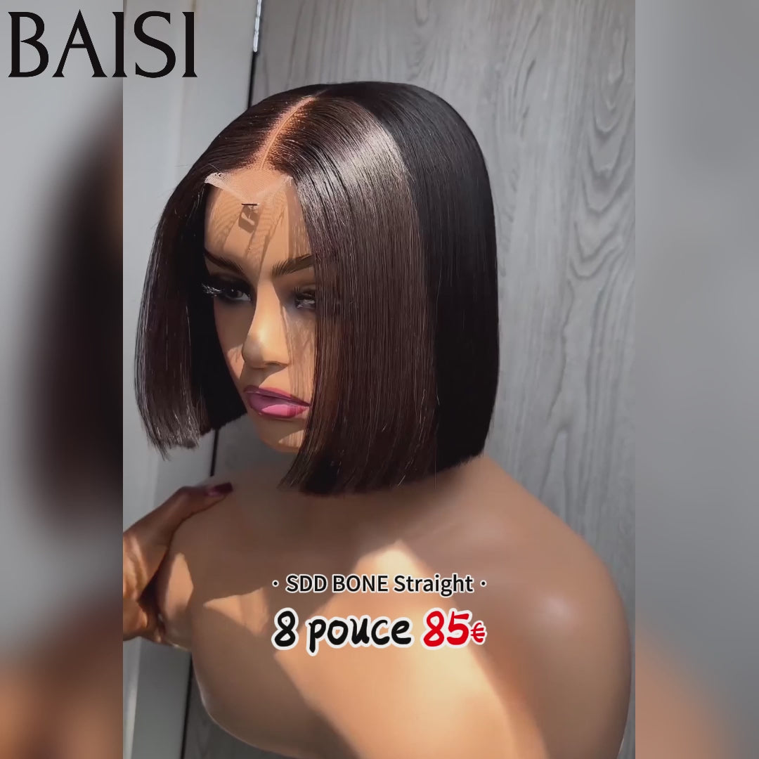 48H Livraison TVA 0€ BAISI 300% densité 15A SDD BONE STRAIGHT 8 pouce 85€ 2x6 Lace Closure Perruque Lisse en 100% Vietnam Hair Pre-plucked