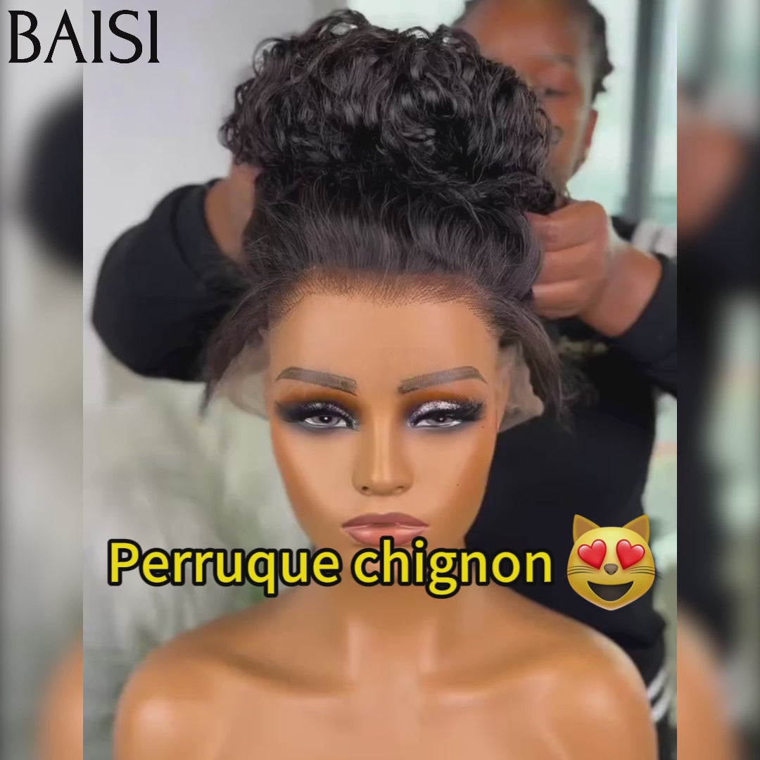 BAISI 360 Lace Perruque Curly en Vrais Cheveux Humains Coiffure Chignion Upgrade Invisible Strap 360 Frontal Perruque Adjustable cordes invisible et réglable