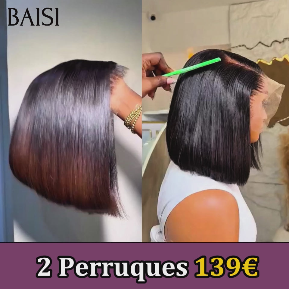 48H Livraison TVA 0€ BAISI 2 BOB Perruques 139€ NOIR et Marron en Vraie Cheveux Humains en Mèche indian Brésilens De Bonne Qualité ou T part lace 18 pouces 149 euro afro curly 250% densite FR38