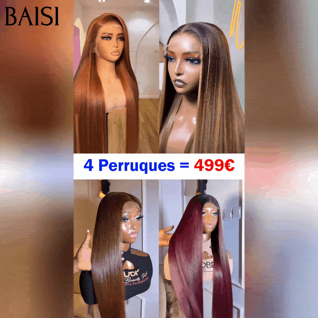 BAISI 4 perruques 4 Couleur 499€ 4X4 lace de Luxe SDD BONE STRAIGHT 100% Vietnam Hair Lisse 18-30 Pouces en 100% cheveux humains à moitié prix FR38