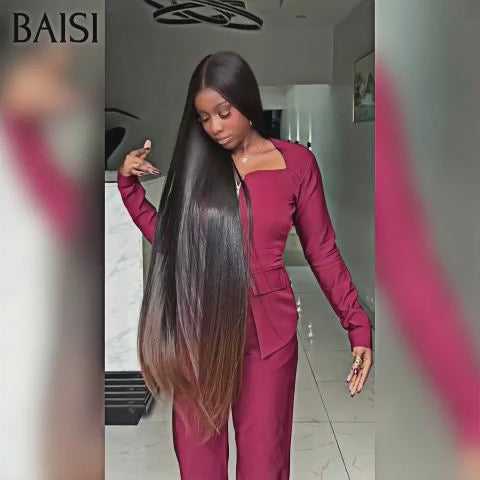 Promo Noël BAISI BLACK FRIDAY PROMO 13X4 lace frontale Perruque Lisse En couleur #1BT4 Marron En 100% Vrais Cheveux Humains