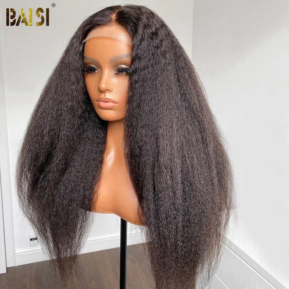 Achetez 2 Prix D'usine BAISI Achetez 2 perruques minimum au prix d'usine fournisseur 4x4 Closure Perruque Kinky Straight En 100% Cheveux Humains En Cheveux Indians Brésiliens De Bonne Qualité (Pas besoins de code)