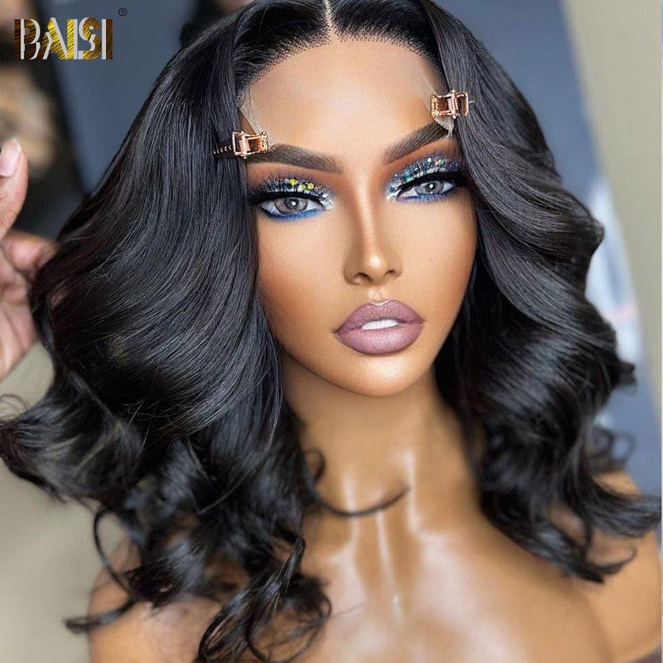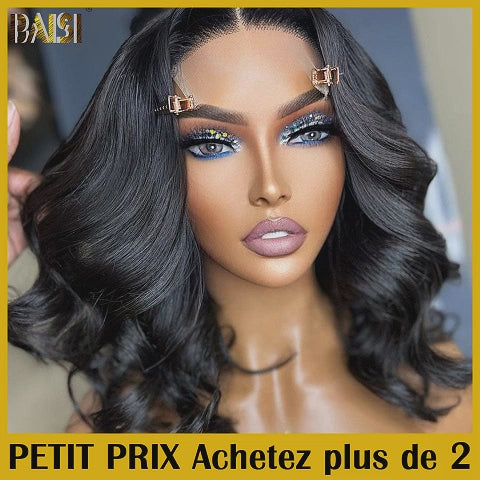 BAISI lace 13X4 frontal Perruque curly Wave 200% Densité BOB 14 Pouces 79€ Pré-plucked Pas Besoin de Colle en 100% Cheveux Humains