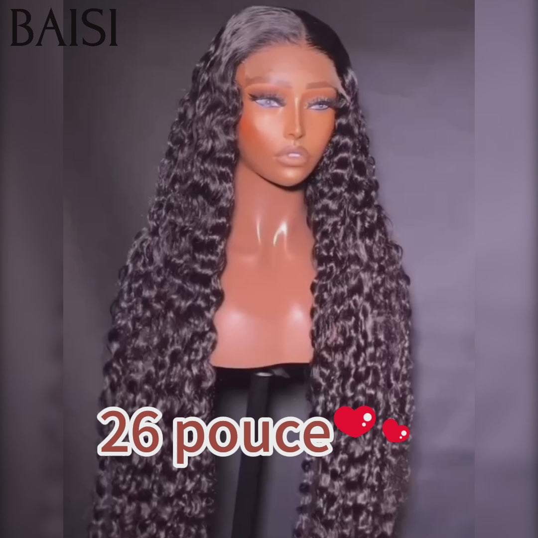 Achetez 2 Prix D'usine BAISI Achetez 2 perruques minimum au prix d'usine fournisseur 4X4 closure perruque trop longue curly wave NOIR en 100% cheveux humains