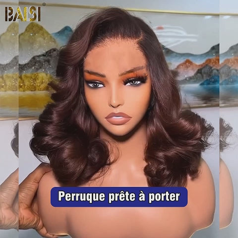 BAISI 4X4 Perruque Bob Body Wave En Marron #4 Pré-plucked Pas Besoin de Colle en 100% Raw Hair Lace déjà couper