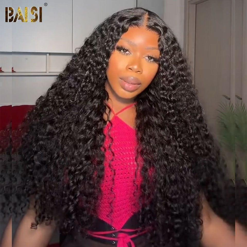 BAISI 4x4 Perruque Deep Wave en Noir Sans Colle Lace déjà couper Facile à Porter en 100% Cheveux Humains