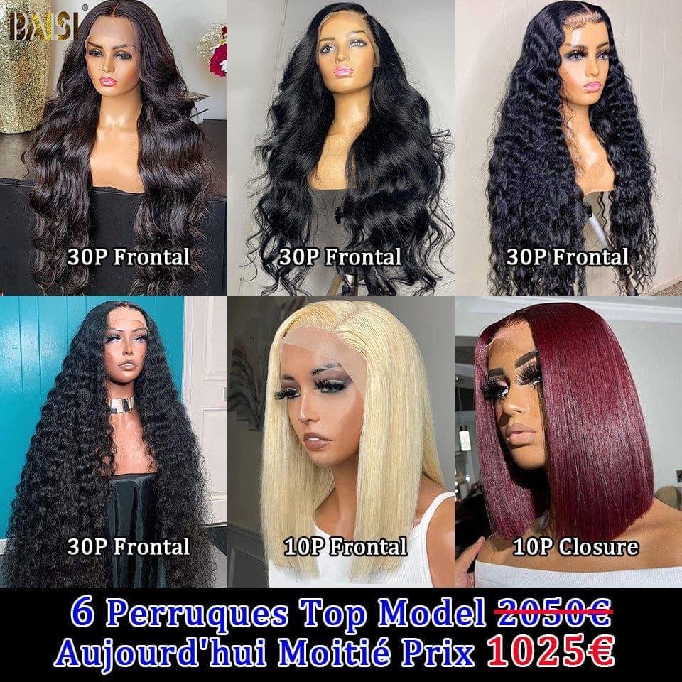 48H Livraison TVA 0€ BAISI 6 perruques 469€ à moitié prix en France 6 styles de perruques différents en 100% cheveux humains
