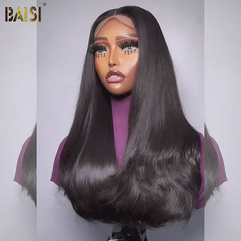 BAISI 7x5 Lace Perruque Lisse Noir En Haut De Gamme 250% densité En 100% Raw Hair
