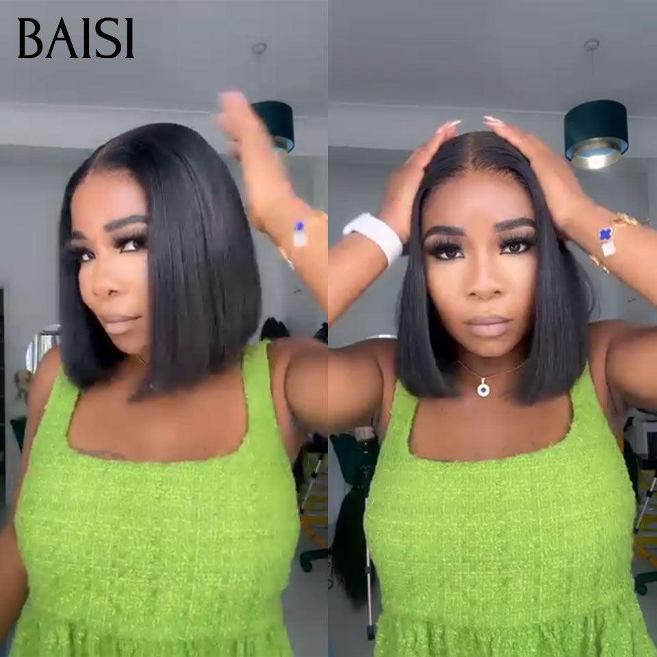 BAISI Achetez 1 + 1 Gratuite = 119€ sans Colle pixie curly wave et 13X4 Lisse 12 Pouces en 100% Cheveux Humains BS60