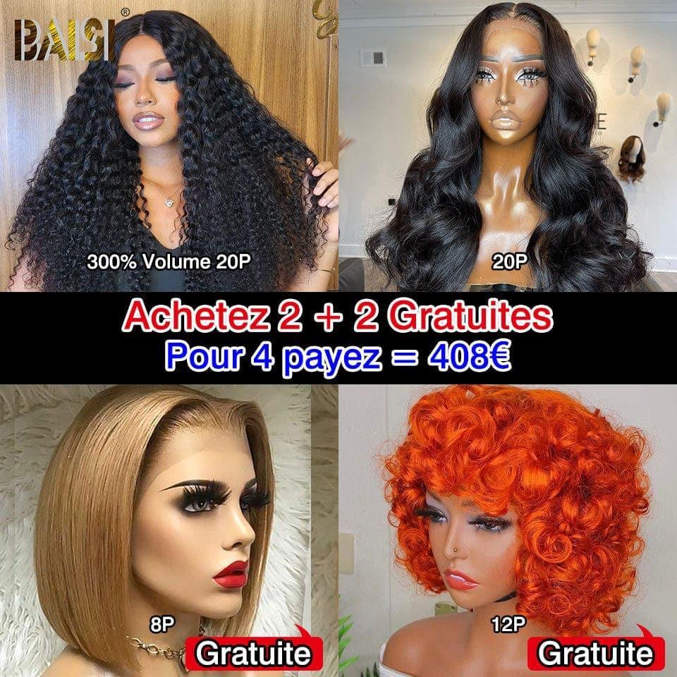 BAISI 2 pixie 13X4 lace frontal bouclé wave en couleur Bordeaux et Miel ou Achetez 2 + 2 Gratuite = 408€ Perruque en 100% vrais cheveux humains Code: VIP100
