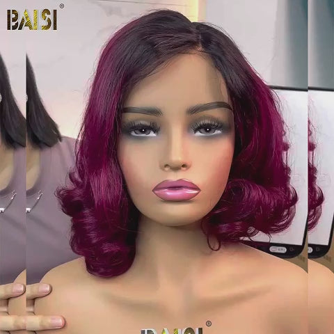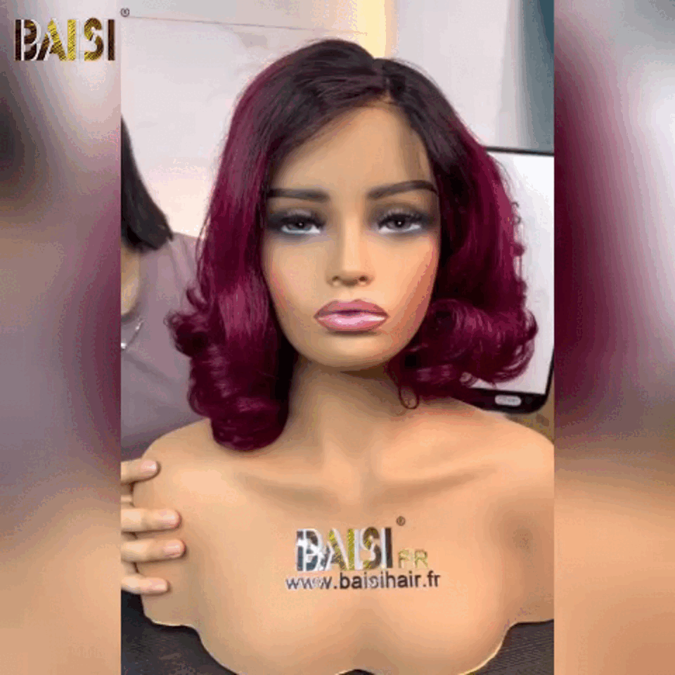 Achetez 2 Prix D'usine BAISI Achetez 2 perruques minimum au prix d'usine fournisseur 13X4 lace perruque egg wave en couleur 4T30#14 Pouces ou13x6 Lace Frontal Perruque Curly 28 pouce en Noir et 4X4 1BT99J 10 poucesen 100% Cheveux Humains