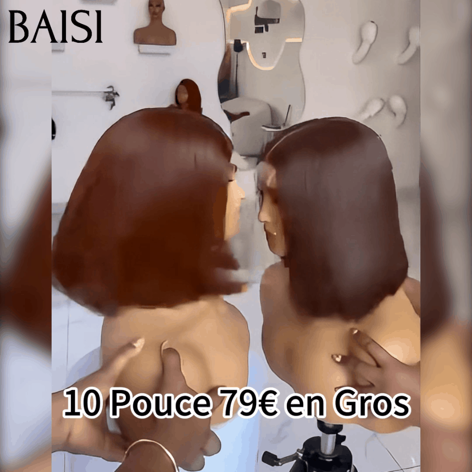 Achetez 2 Prix D'usine BAISI Achetez 2 perruques minimum au prix d'usine fournisseur Perruque Bob lisse 2x6 Lace de luxe en couleur marron 10 pouces 100% Cheveux Humains ( pas besoin de code)