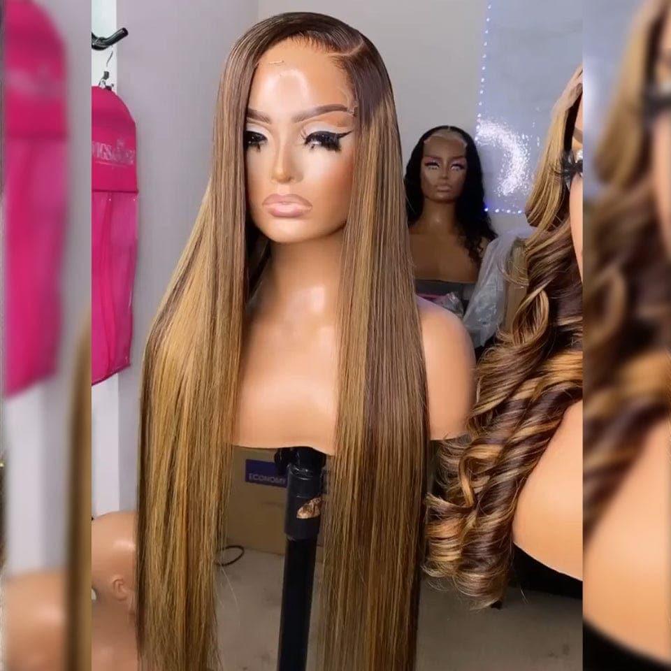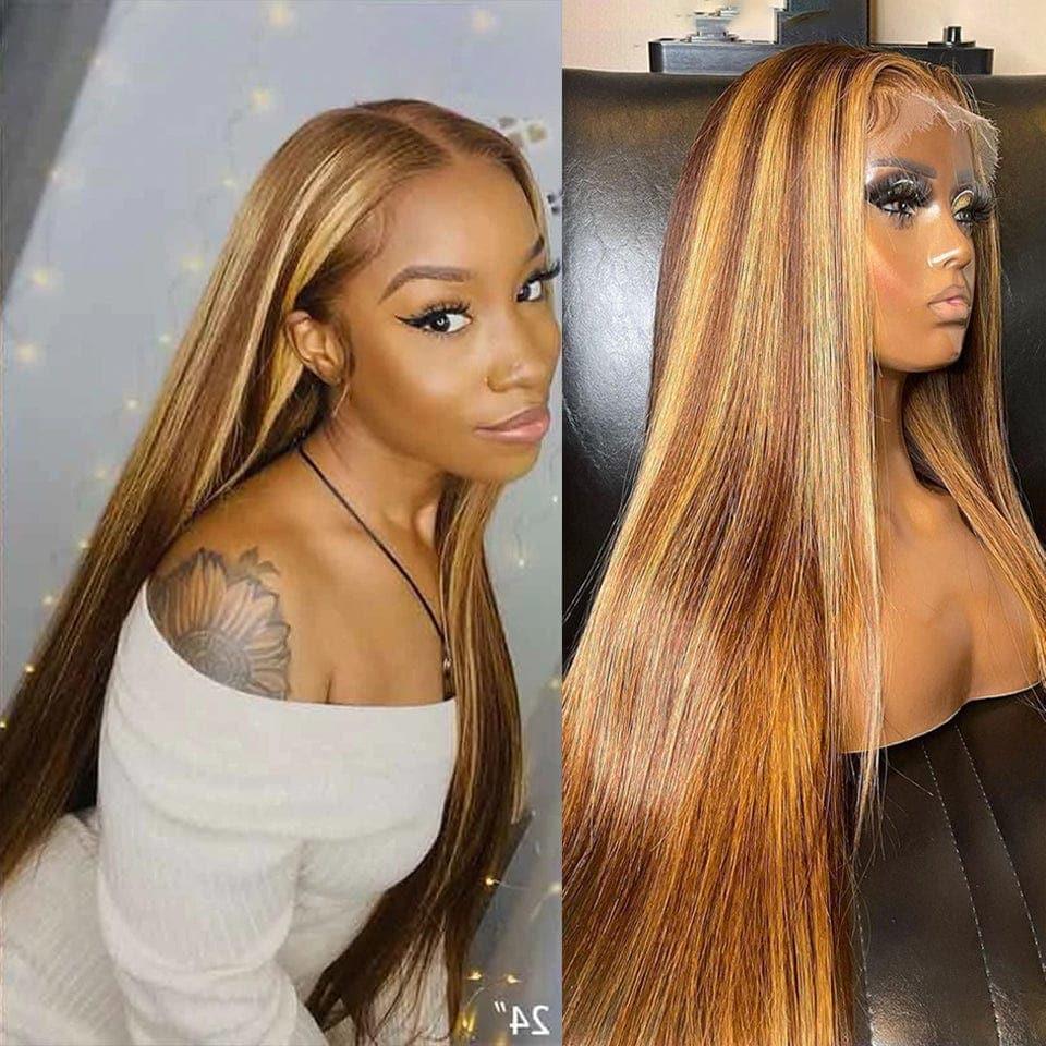 Achetez 2 Prix D'usine BAISI Achetez 2 perruques minimum au prix d'usine fournisseur en France TVA 0€ 48H arrivé 13x4 Lace Frontal Perruque Lisse Miel #4MIX#27 En 100% Cheveux Humains (Pas Besoin de Code)