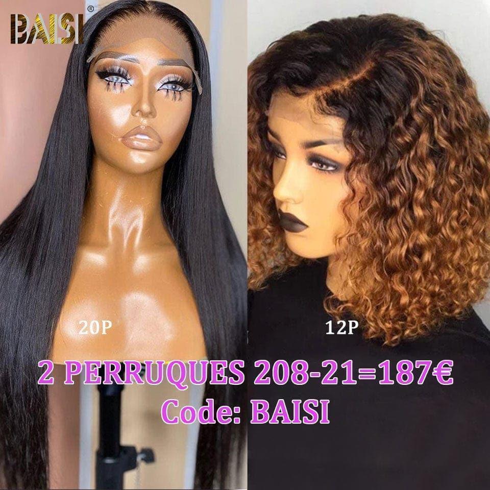 BAISI 2 perruques promo Lisse 13X4 lace 4#27# et 4X4 lace 99J# lOT DE LA PERRUQUE ASHLEY COUPE BOUCLE MARRON PLUS CLOSURE PERRUQUE LISSE EN COULEUR NATURELLE