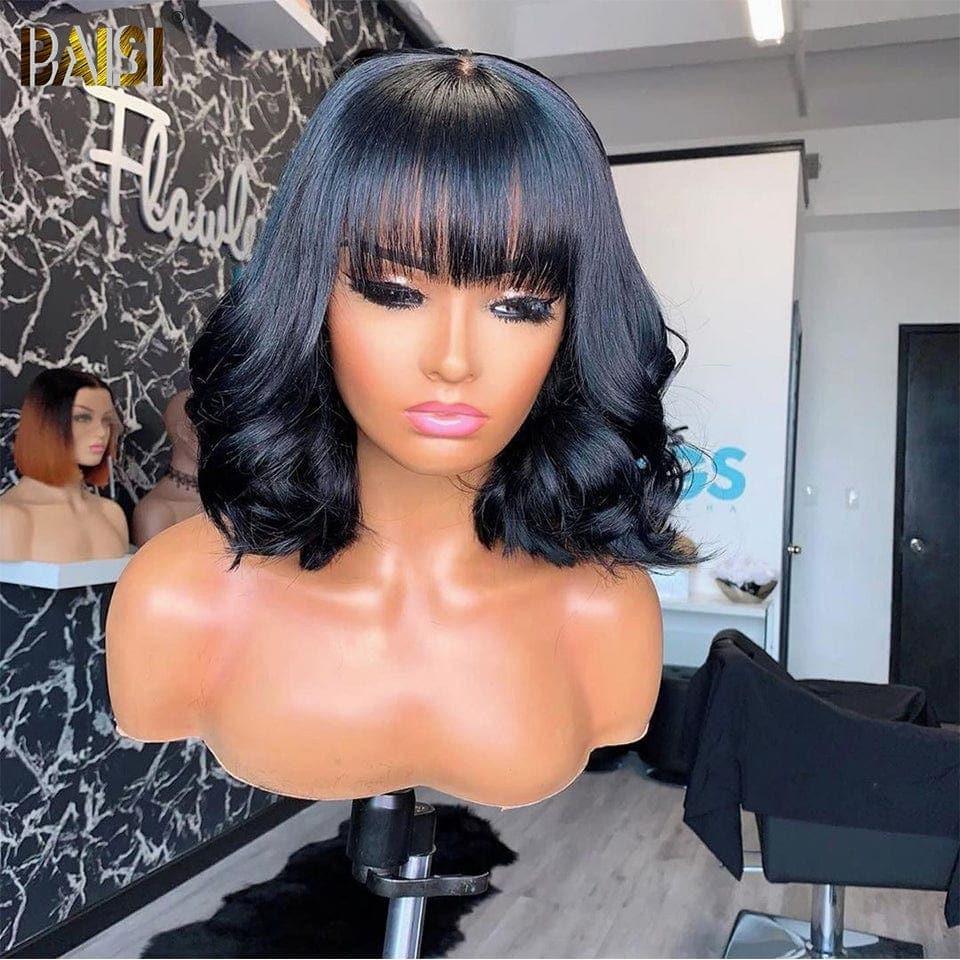 BAISI Bob Perruque Avec Frange Ondulé Body Wave 100% Cheveux Humains VIP100