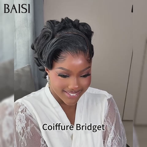 BAISI Coiffure de luxe Bridget Perruques Mariage noir Prête à porter chignon et personalisation comme sur la vidéo 100% identique avec lace frontale événement spécial BS120