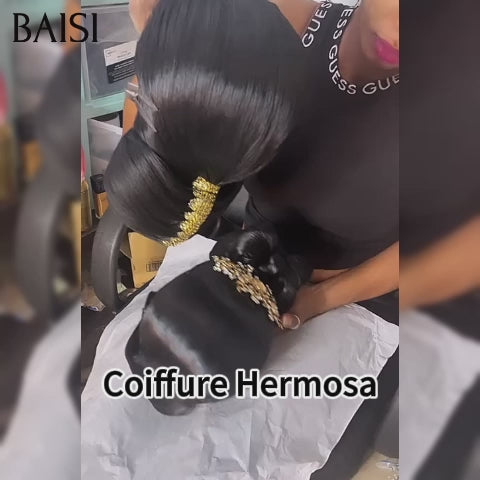 BAISI Coiffure de luxe Hermosa Perruques Mariage noir Prête à porter chignon et personalisation comme sur la vidéo 100% identique avec lace frontale événement spécial