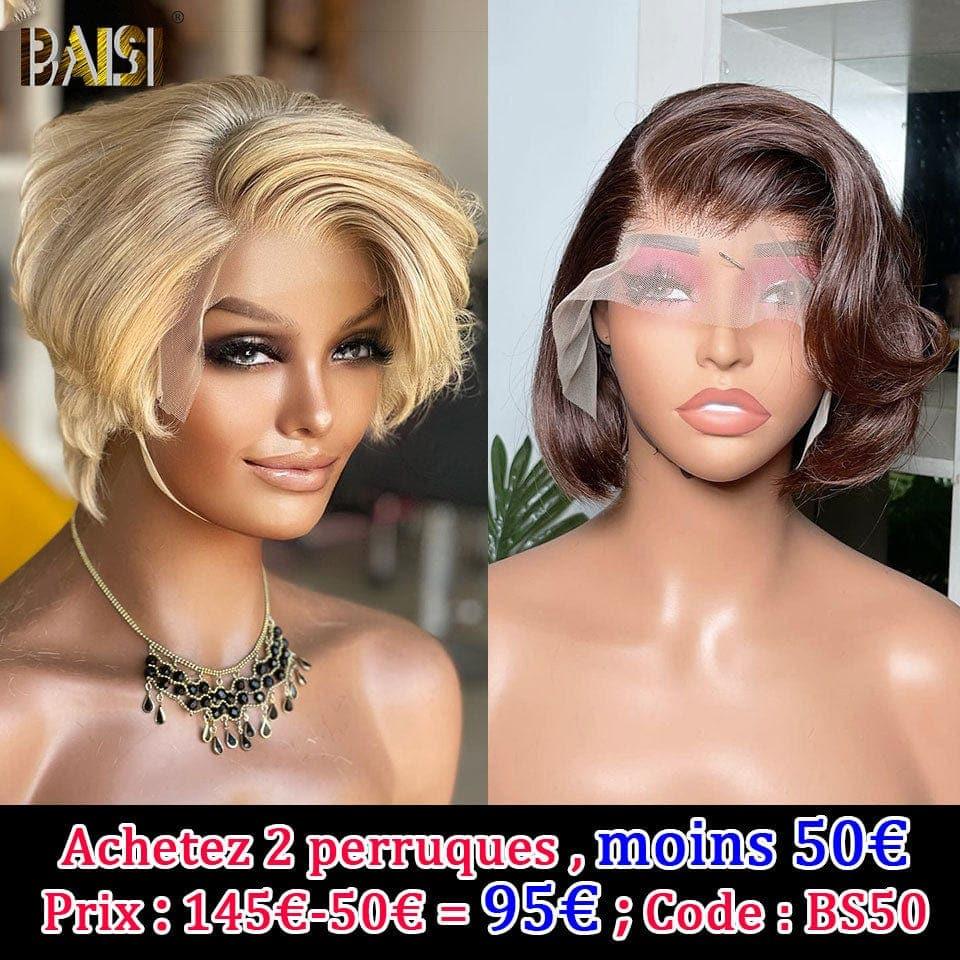 48H Livraison TVA 0€ BAISI Achetez 1 +1 Gratuite=149€ 5x5 lace 10pouces water wave et 13x4 lisse 12pouces ou Achetez 1 + 1 Gratuite = 269€ bob curly wave avec Frange 14 Pouces et 4X4 lace Body wave 26 Pouces en 100% Cheveux Humains