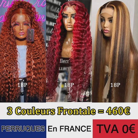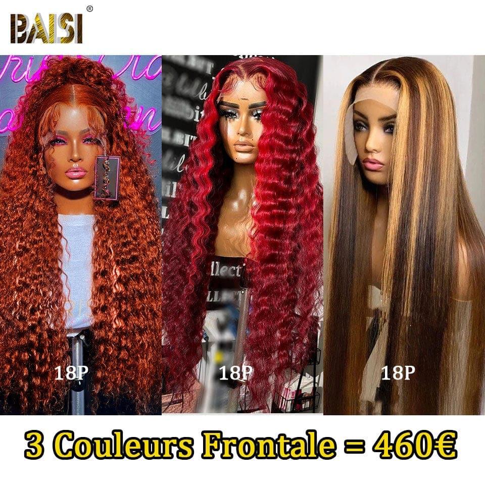 48H Livraison TVA 0€ BAISI HAIR FR 13X4 Lot De 3 Perruques 18 pouces En Couleur Marron ou orange ou 99J 400€ En 100% Cheveux Humains VIP100