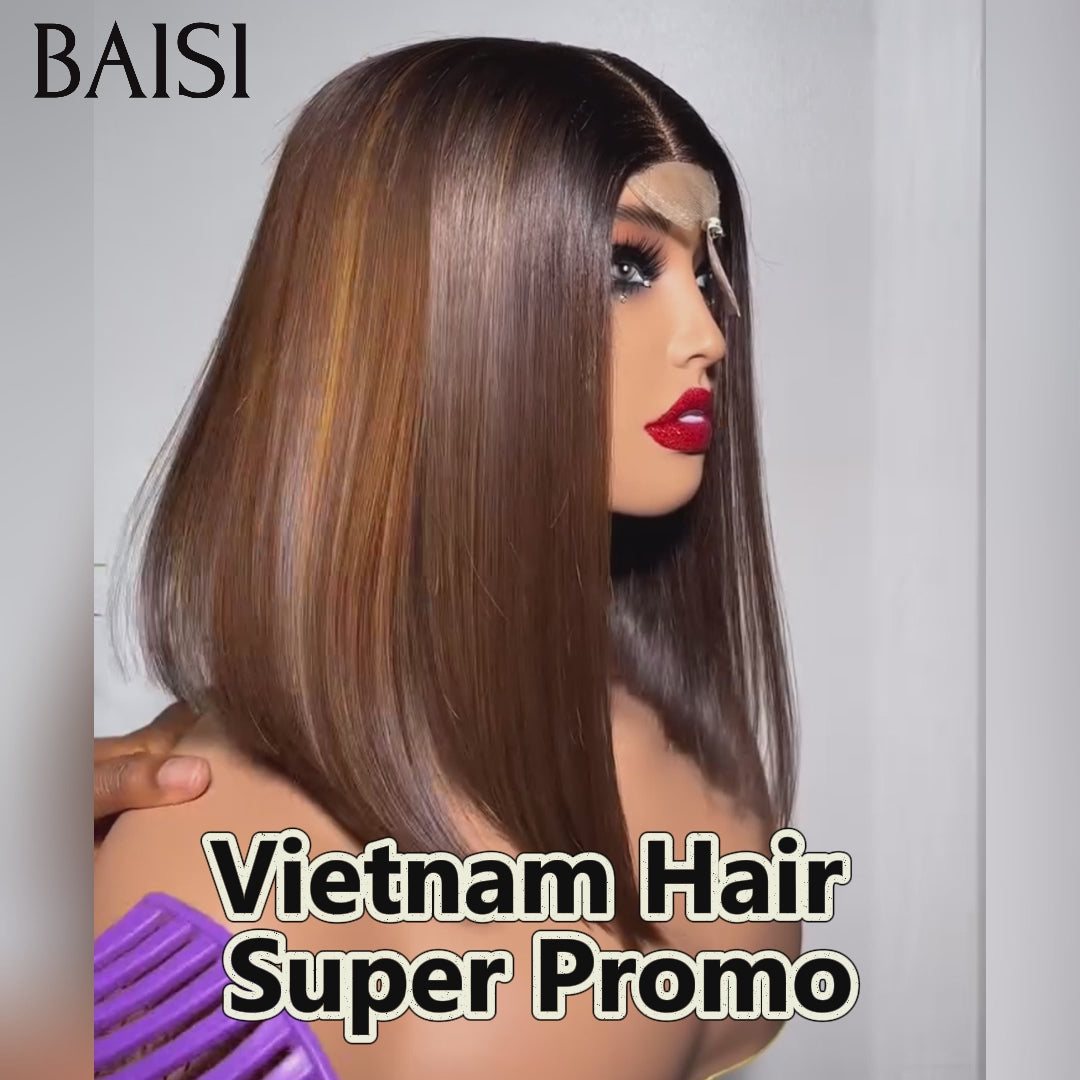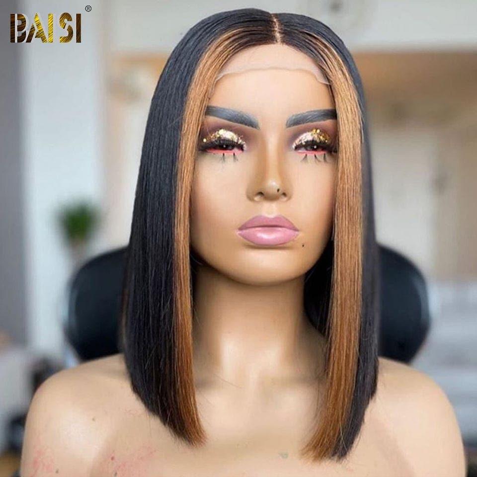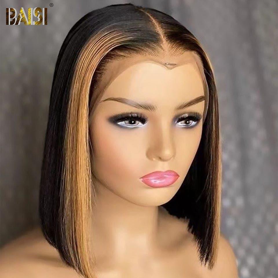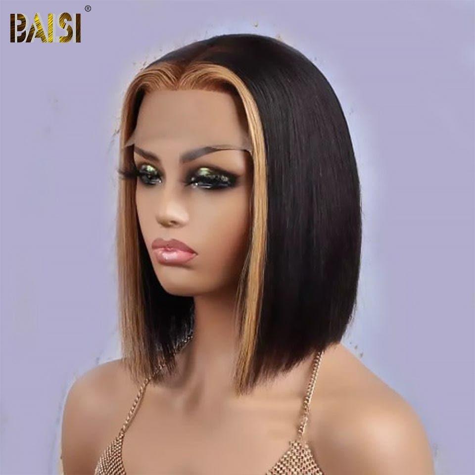 BAISI Super BLACK FRIDAY 12 Pouce 129€ Lace 2X6 Perruque Carré SDD BONE STRAIGHT Lisse Highlight #1BMIX#30 de luxe 100% Vietnam hair FR38