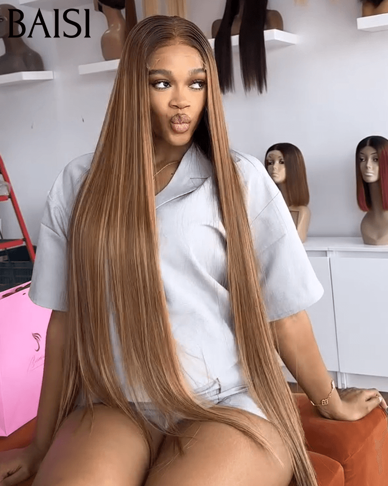 BAISI Lot de 2 perruques en 100% vrais cheveux humains 210€ ou 2X6 lace lisse en couleur 4#27# de luxe