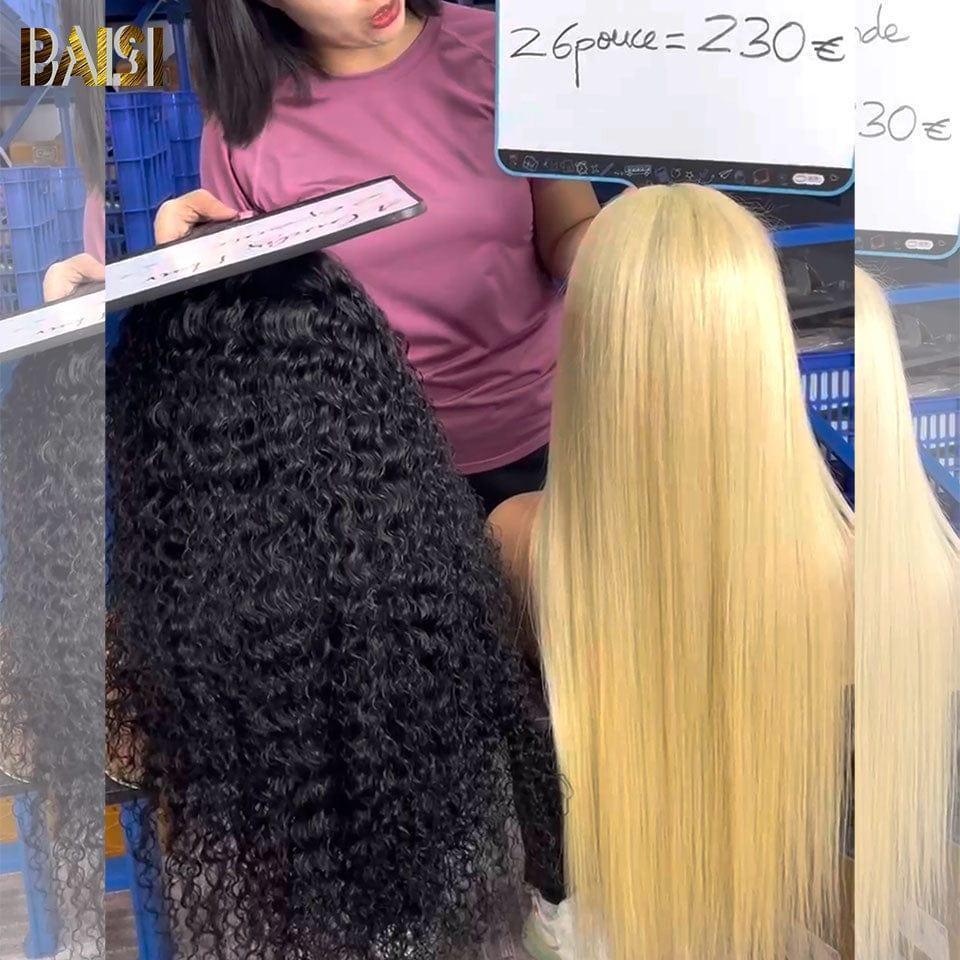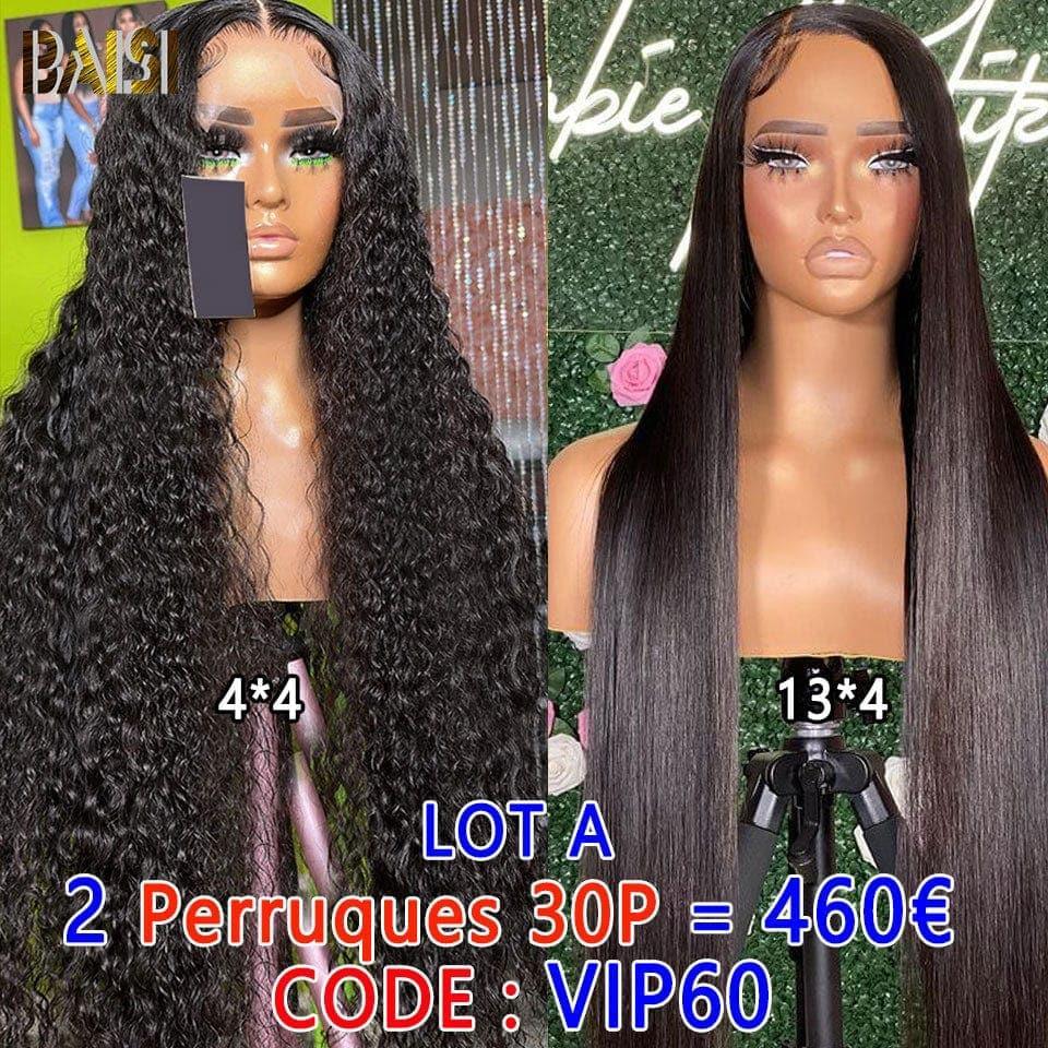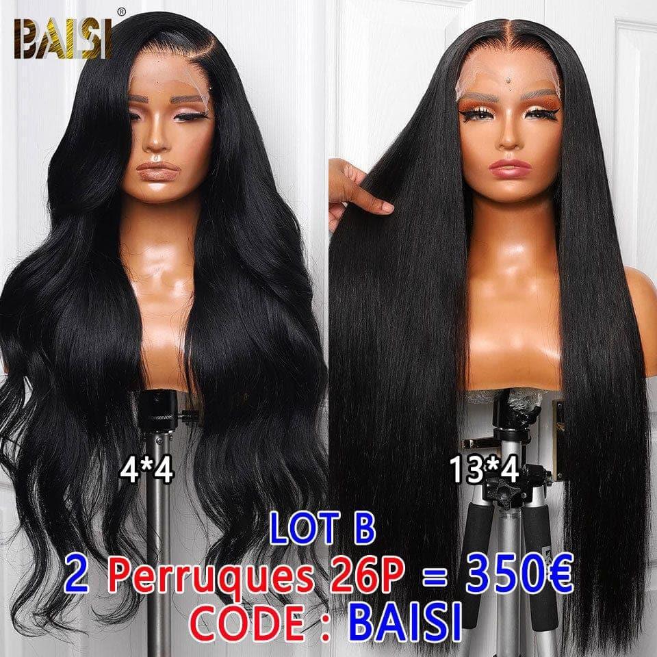 BAISI 13X4 lace frontal 18 pouce Sans Colle 89€ ou Lot De 2 Perruques En Cheveux Humains Longue Perruque Lisse Plus Perruque Body Wave et curly wave 26Pouces