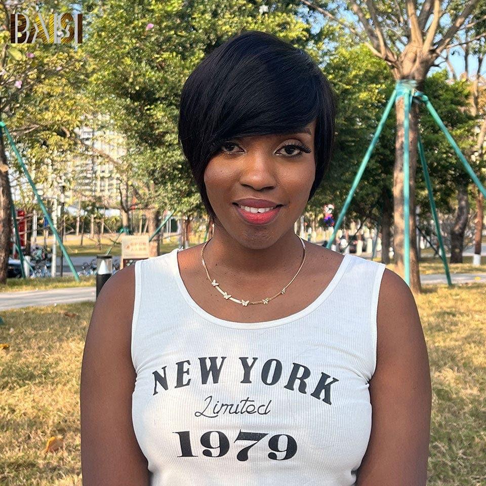 48H Livraison TVA 0€ BAISI perruque pixie Louise oui avec lace 13X4 lace Body wave NOIR Mixte miel 22 pouce 268€ ou pixie sans colle F-9188 100% cheveux humains