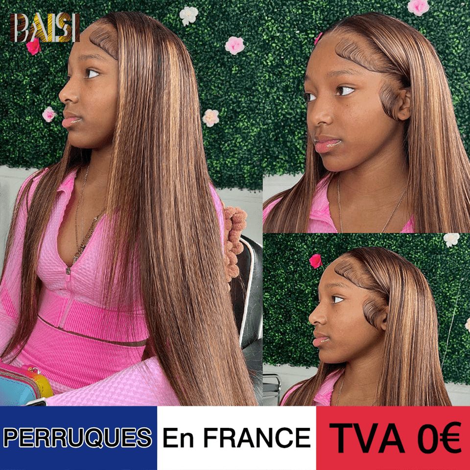 BAISI Morgane 13x4 Lace Frontal Perruque Lisse Miel #4MIX#27 en 100% Cheveux Humains B