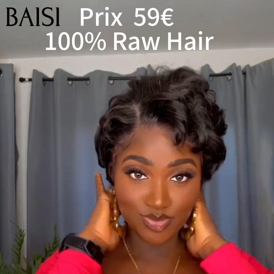 BAISI Offre Flash 13x4 Perruque Pixie boucles en Noir 8 Pouces 65€ 200% densité Pré-plucked 100% Cheveux Humains FR38