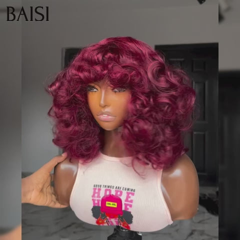 48H Livraison TVA 0€ BAISI Offre Flash 75€ Perruque Bob egg wave avec Frange 10 pouces moitié prix en 99J# Sans Lace en 100% Cheveux Humains MP50