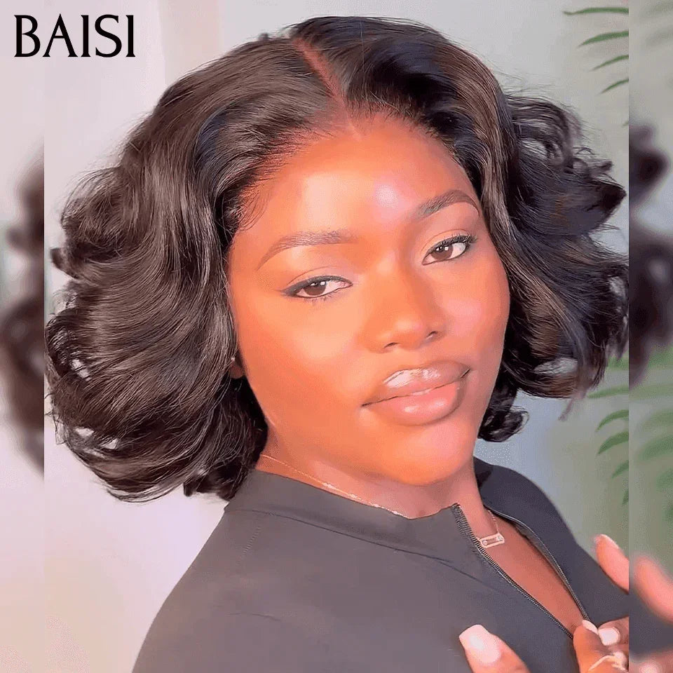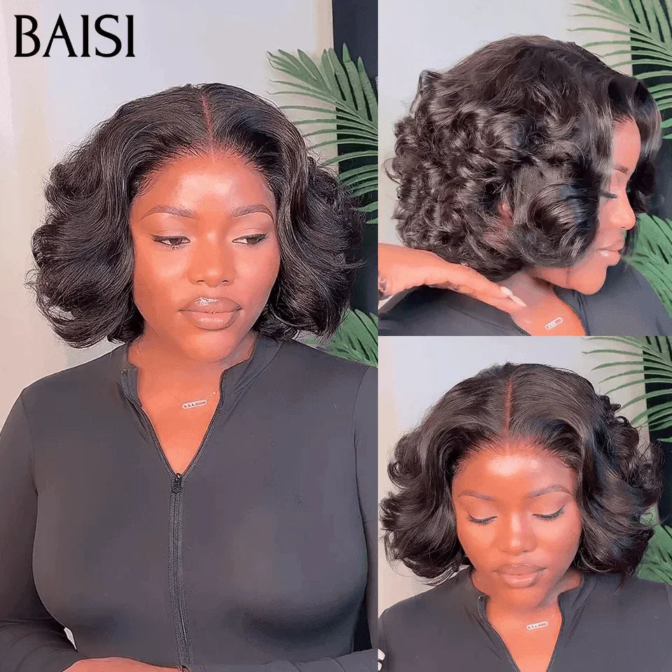 BAISI Perruque 13X4 Pixie Egg Curls 1B# 78€ 250% haute densité personnalisé en 100% Cheveux Humains F-026 BS65