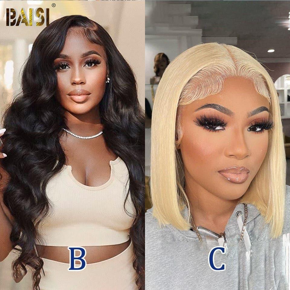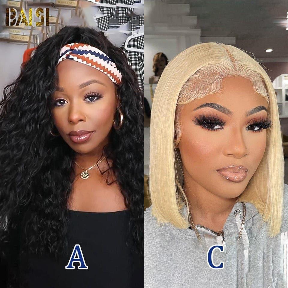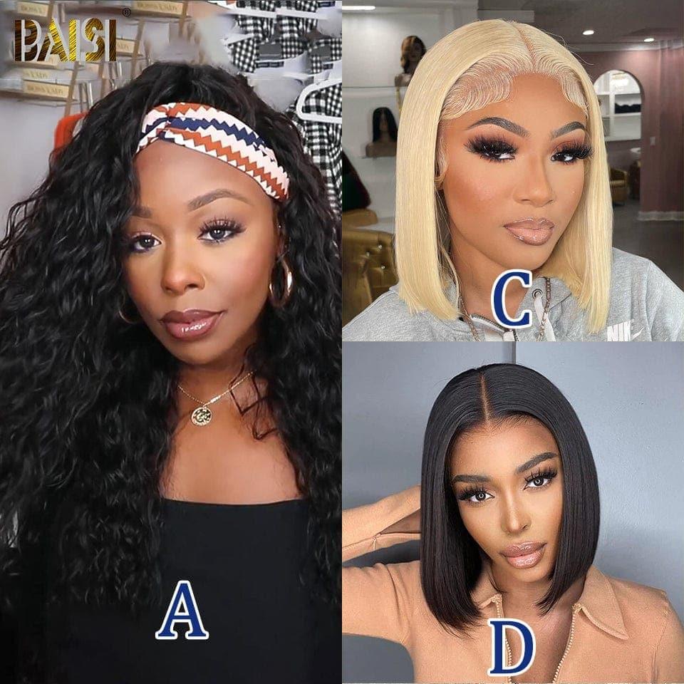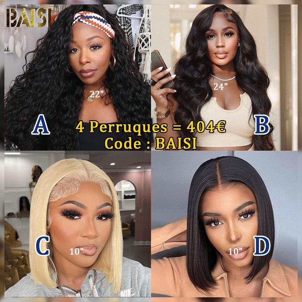 BAISI 2 Perruques 178€ Ventes En Gros 300% densité Bouclée Egg Wave avec frange 14 pouces en 100% Cheveux Vierges